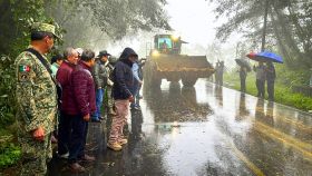 Sobre la carretera de terracería que comunica a Naupan, Puebla, con dirección a la presa del Tejocotal